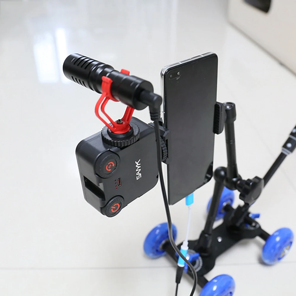 Conjunto de Vlogging SANYK, Combo de polia de quatro rodas para fotografia com celular ou outra câmera de sua preferencia. Kit contem SLR com luz de preenchimento Led, Microfone e bastão de selfie